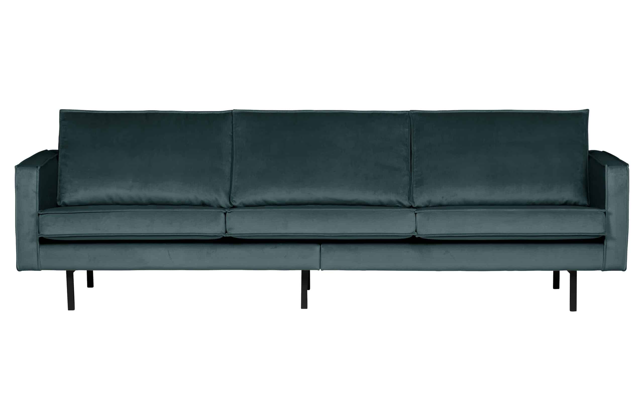 Tidløs og robust Rodeo 3 personers sofa fra Woood med en skøn fast siddekomfort.Sofaen er beklædt med krikand blågrøn polyester fløjl, og den høje benramme får sofaen til at se let og luftig ud.Her får du en sofa til stuen, der er inspireret af 50’ern